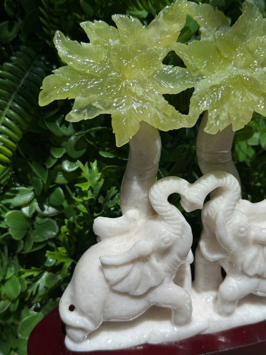Jade Elephant carving in custom wood stand